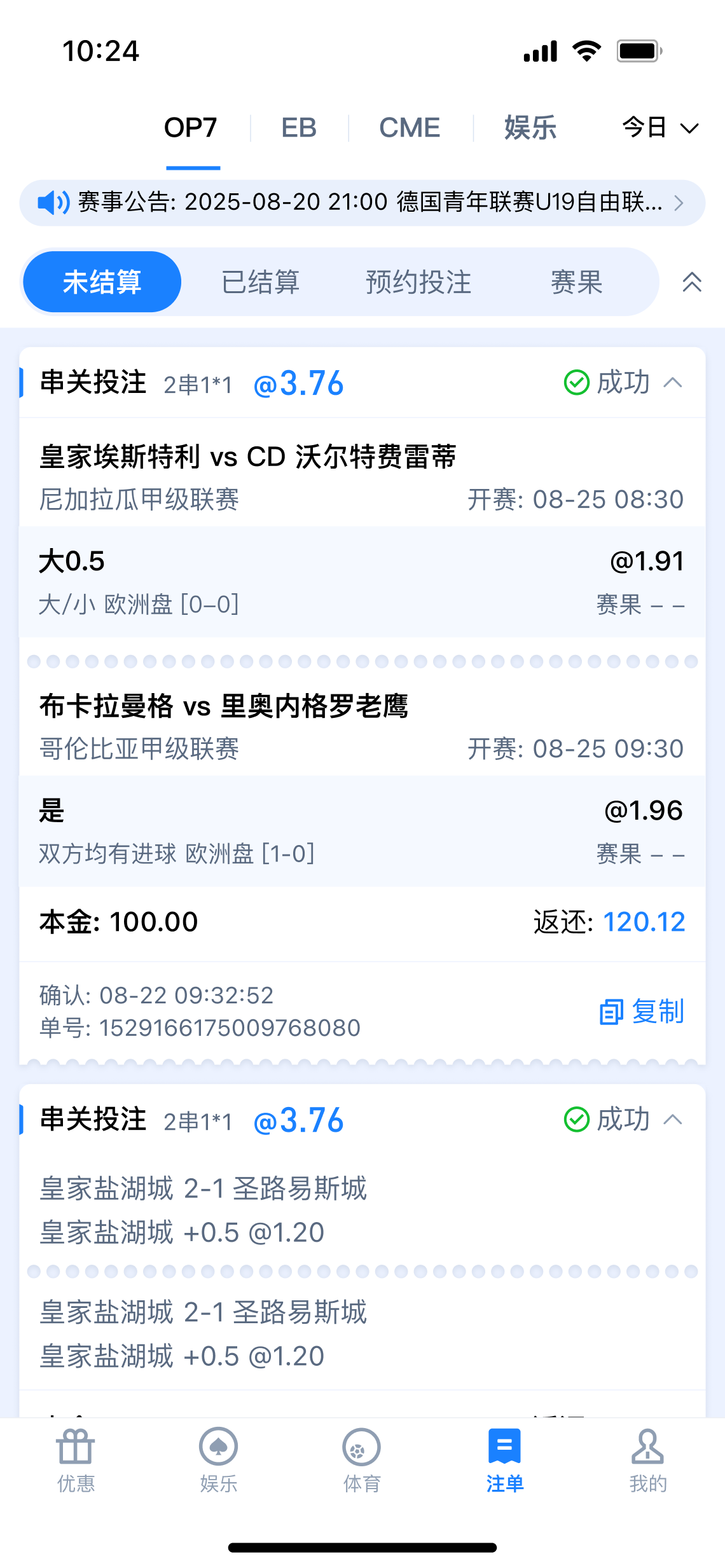 公告: 1、巅峰预言家:洞见赛果,亮出你的剧本 3月22日 02:00 本菲卡vs吉马良斯 2、冠军竞猜返利50% 最高1500元 3、OP7霸王餐包赔 投注多场指定赛事,享指定场馆总负盈利包赔!